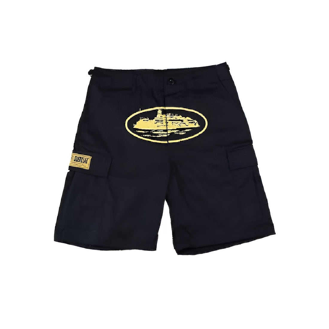 Premium street wear shorts from Corteiz Guerillaz Black/ Yellow .These shorts embodies the aesthetics inspired by the brand signature guerrilla with contemporary urban style. Created for comfort and durability, they represent the intersection of high quality construction and road culture authenticity. Design reflects the commitment of cortizes to create a statement of commentary with the Street wear community while maintaining functionality everyday.