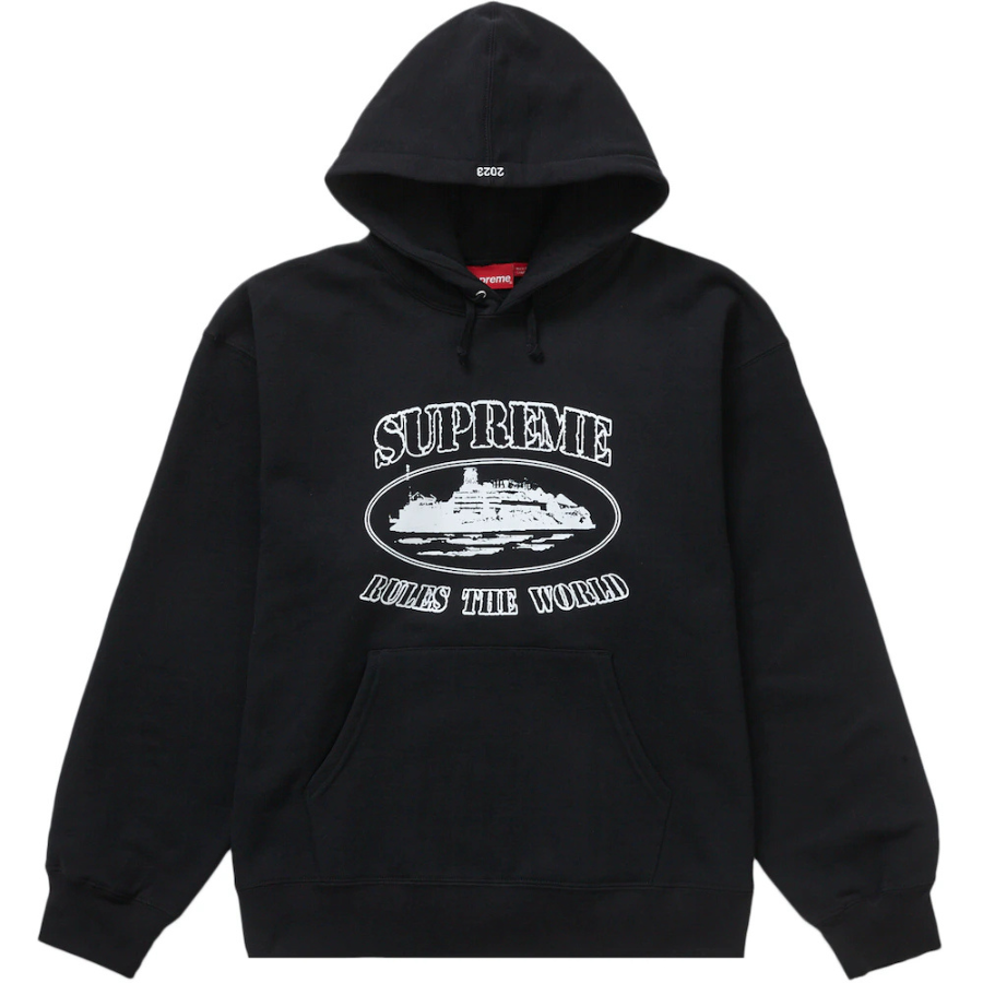 Step into bold streetwear culture with the Corteiz x Supreme Black Hoodie, where two famous brands unite for the terminal fashion statement. Designed for support and confidence, this hoodie features premium cotton fabric, a soft inner layer, and a relaxed fit that keeps you comfortable all day long. The sleek black shade, spotlight by the signature Corteiz and Supreme branding, adds exclusivity to your wardrobe. Perfect for casual wear or city incidents, it blends modern street vibes with timeless appeal. Shop now and redefine your look with this limited-edition association.